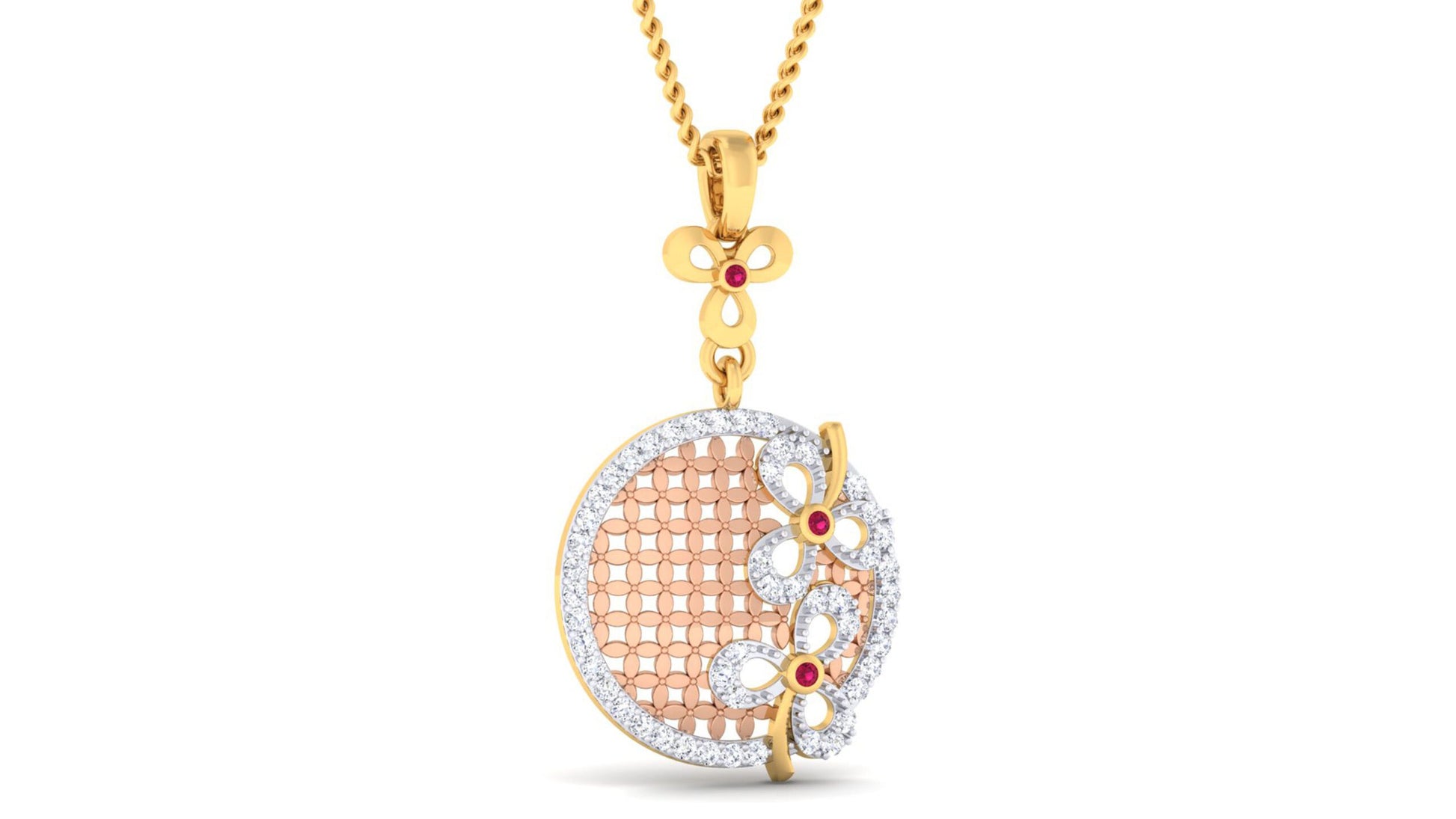 BEAUTIFUL NET OF LEAF DIAMOND GOLD PENDANT SET